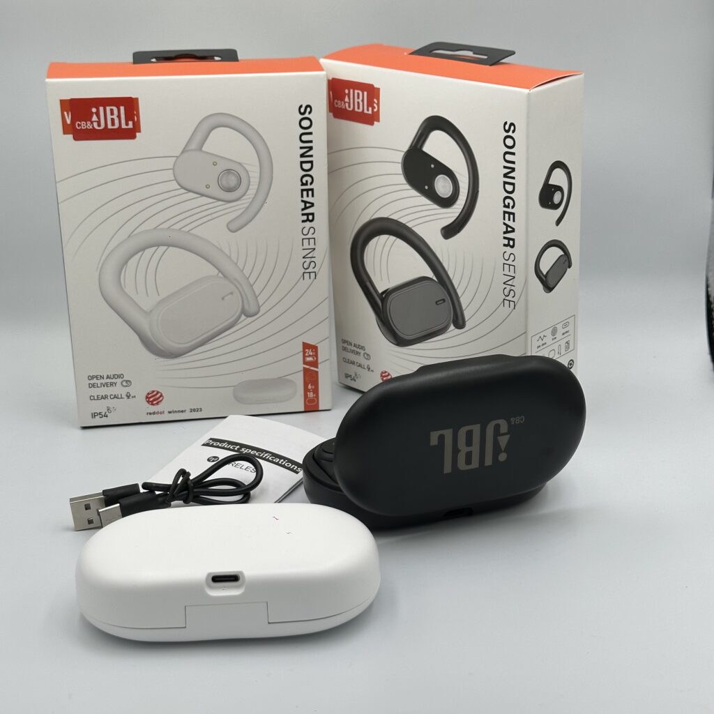 【Splash and dust resistant】: The JBL Soundgear Sense earbuds are rated IP54 dust proof and splash proof. So a gust of wind on a dusty trail or a quick summer shower won’t even slow you down.